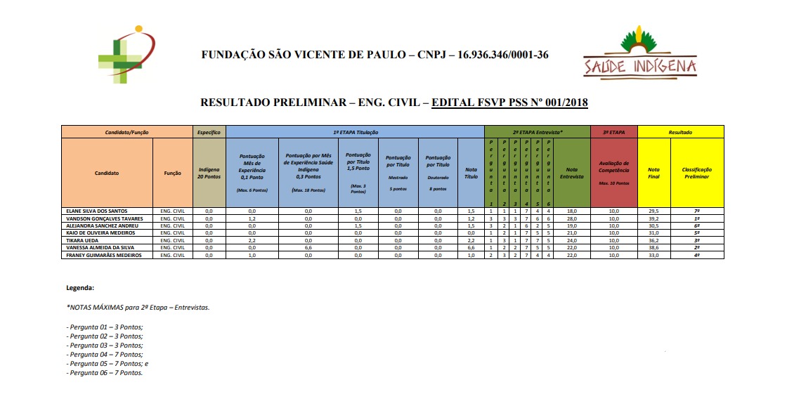 A Fundação São Vicente de Paulo (Paraopeba/MG) realizou a etapa de entrevista com os candidatos ao cargo de Engenheiro Civil no Processo Seletivo Simplificado (PSS) realizado em dezembro de 2018 no Distrito Sanitário Especial Indígena de Alto Rio Negro (DSEI/ ARN) localizado em São Gabriel da Cachoeira na Amazônia.