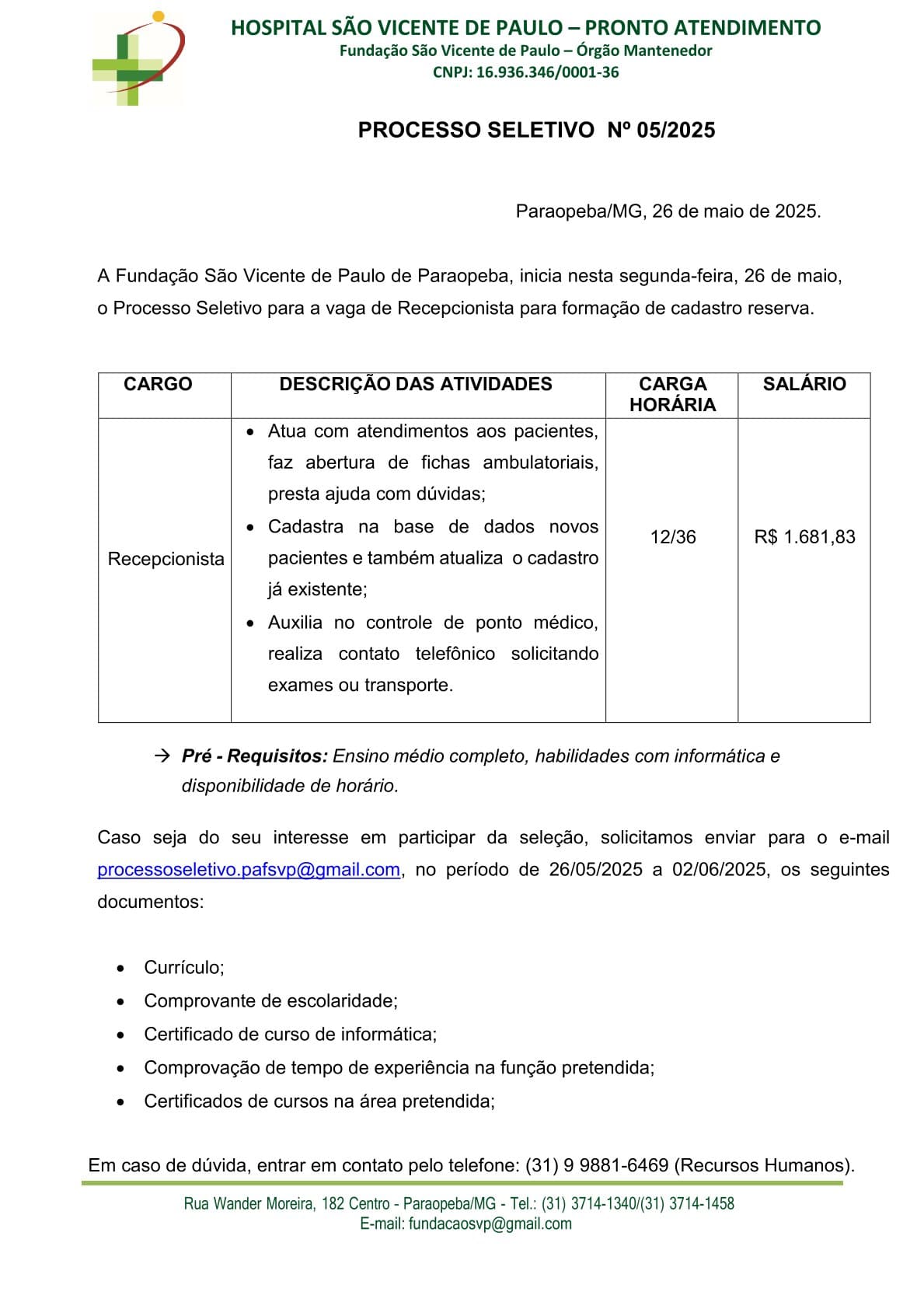 Processo Seletivo Nº 05/2025